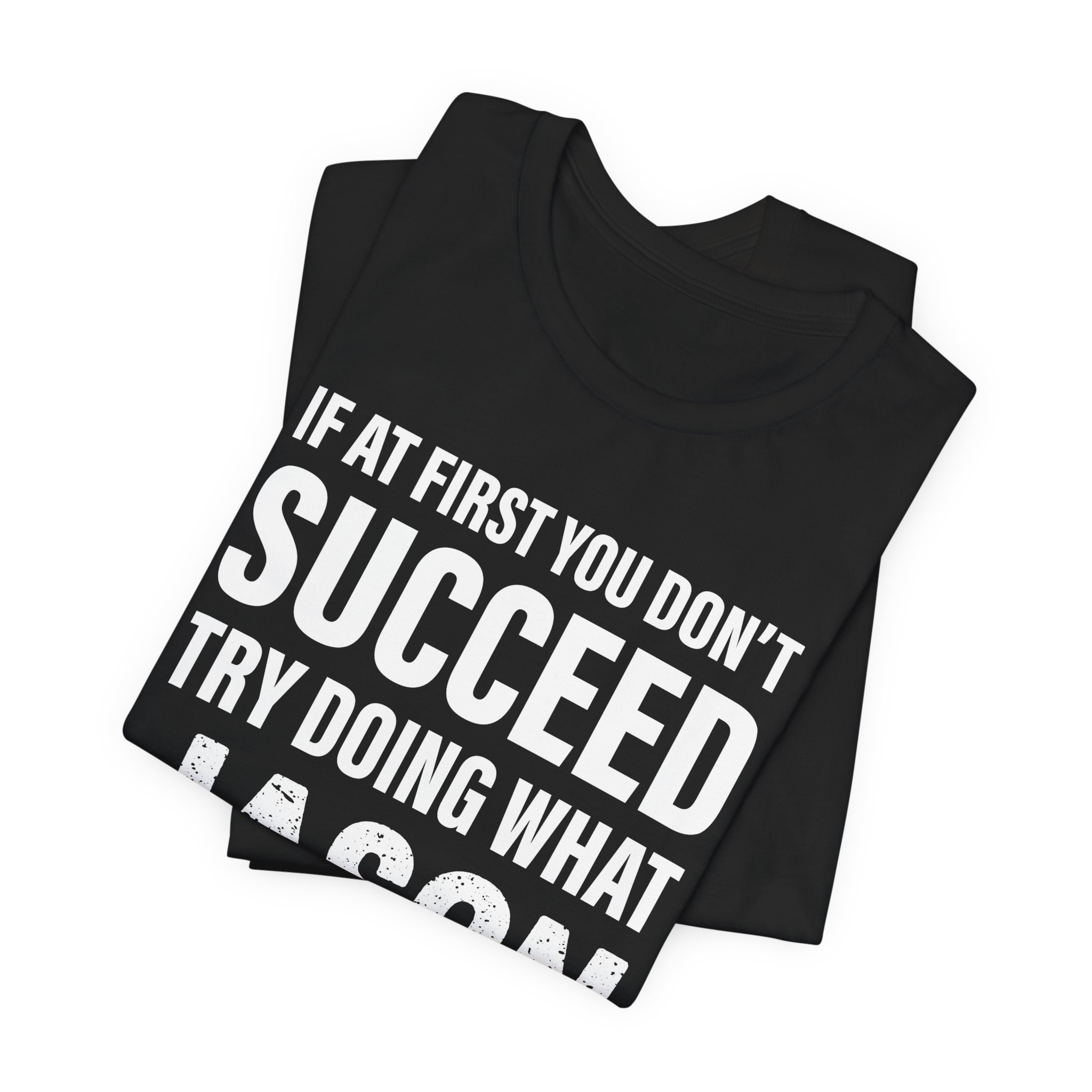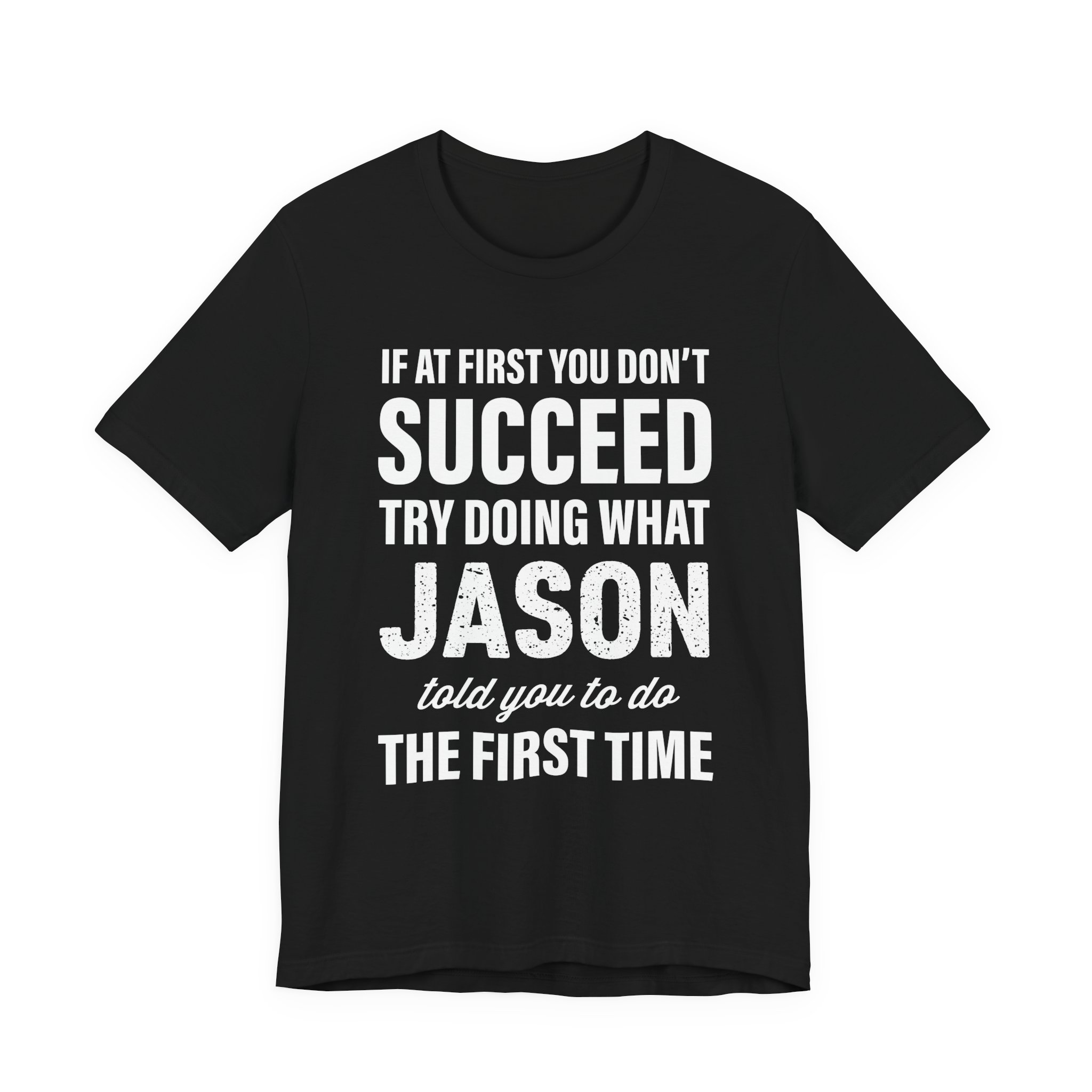This soft, breathable tee carries a dry, confident humor that lands anywhere friends gather. The bold white type reads like a wink: “If at first you don’t succeed, try doing what Jason told you to do the first time.” Lightweight Airlume cotton and a clean retail fit keep the silhouette casual and sharp. It’s the kind of shirt you reach for when you want to spark a laugh without trying too hard — worn to backyard barbecues, low-key reunions, or lazy weekends running errands. The ribbed collar and shoulder tape keep the neckline steady through wear, while side seams preserve the shape so the message stays front-and-center. Fade-resistant printing holds the contrast so the joke stays readable, wash after wash.
